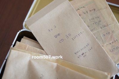 1枚の封筒に1ヶ国分を入れて保管。旅行当時のレートや残金も記載。