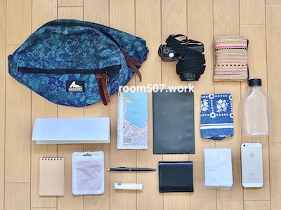 現地調達ゼロ。持参荷物で3週間過ごせた。