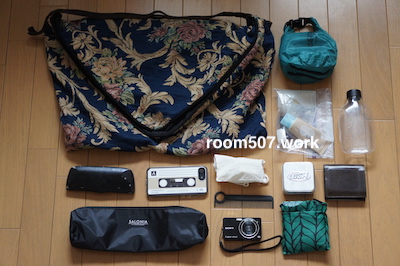 この時の荷物写真は、スッキリしています。写真には無いけど持参したスマホ、カメラが写っていたとしても、荷物多いな、とはならない気がする。